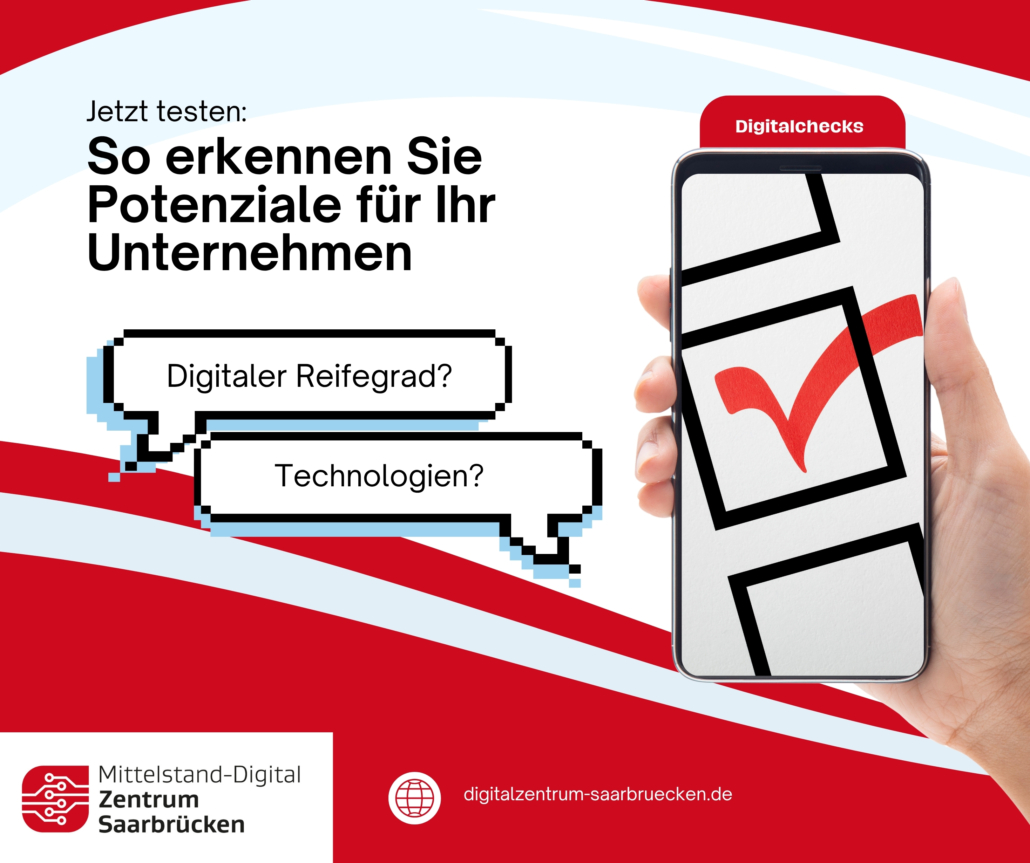 Sie wollen wissen, wie digital Ihr Unternehmen wirklich aufgestellt ist? Unsere Digitalchecks bieten Ihnen einen schnellen Überblick über zentrale Themen der Digitalisierung – von Technologien über Prozesse bis hin zu Fördermöglichkeiten.