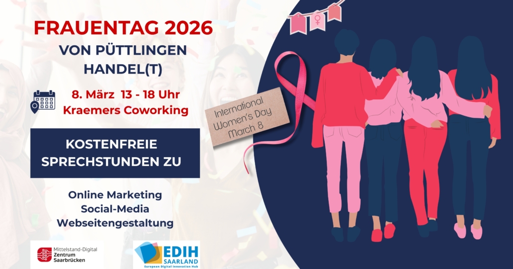 Die Veranstaltung findet in Kooperation mit „Püttlingen handelt“ sowie dem EDIH Saarland statt und ist Teil der Aktivitäten rund um den Internationalen Weltfrauentag 2026. Ziel ist es, digitale Kompetenzen regional zu stärken und Unternehmerinnen bei der Weiterentwicklung ihrer Online-Präsenz zu unterstützen.