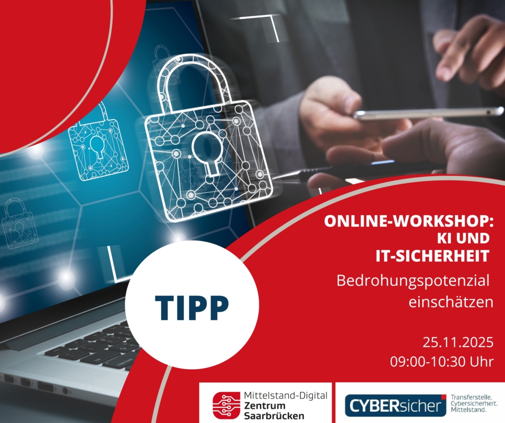 Im Online-Workshop der Transferstelle Cybersicherheit im Mittelstand zeigen Sérgio Marschall (FZI) und Markus Haus (Mittelstand-Digital Zentrum Saarbrücken), wie generative KI funktioniert, wo Risiken liegen und wie Sie Deepfakes, Chatbots & Co. sicher begegnen.