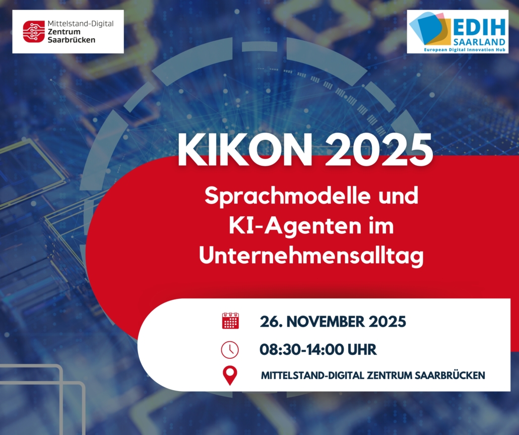 Antworten darauf liefert die KIKON 2025 am 26. November 2025 im Mittelstand-Digital Zentrum Saarbrücken, in Kooperation mit dem EDIH Saarland.